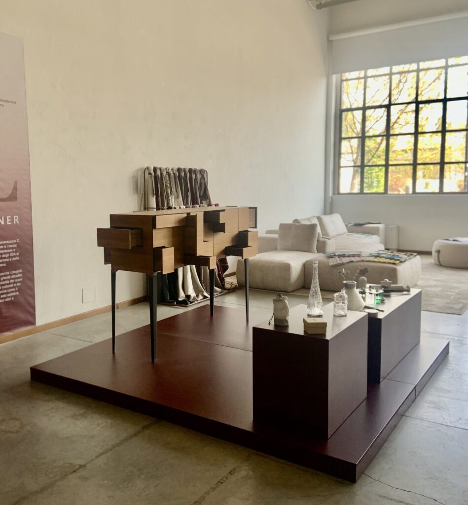 The setting of the exhibition REVEAL – unpublished projects and prototypes by women designers was designed by architect Elena Brunello and Mariacristina Giobbi, realized thanks to the sponsor Fabbro Arredi, a carpentry firm specializing in the creation of fine custom-made storage furniture and furnishings for public and private spaces.