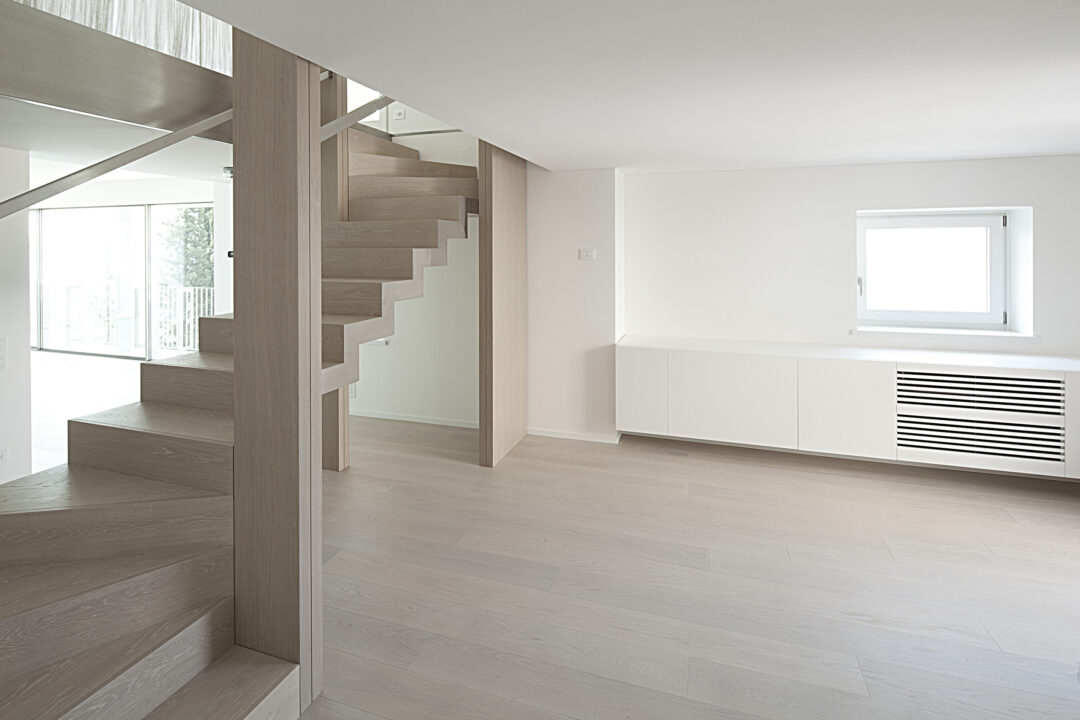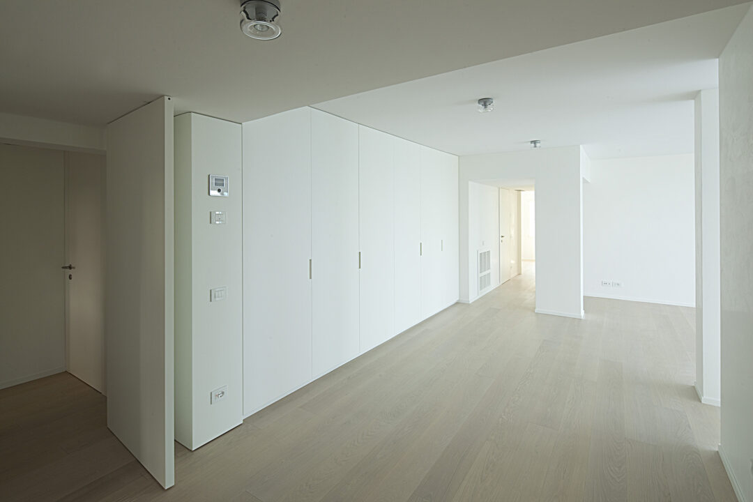 La riqualifica degli interni di un edificio degli anni settanta costruito a monte della strada costiera triestina usa il linguaggio della contemporaneità nel rispetto dei vincoli paesaggistici imposti ai prospetti. La richiesta della committenza è stata quella di un’abitazione con spazi ampi e ospitali, per una dimensione familiare ma aperta alla socialità e convivialità. In un contesto paesaggistico di pregio la protagonista assoluta non poteva che essere la luce naturale, che si è imposta fin da subito quale tema progettuale assieme al concetto di fluidità e continuità visiva degli spazi legittimato dalle ampie metrature a disposizione.
